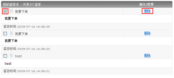 这里是对留言进行删除操作,可以选中“删除”或者选中“全部删除”。