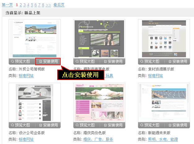 3、选中模板后点击“安装使用
