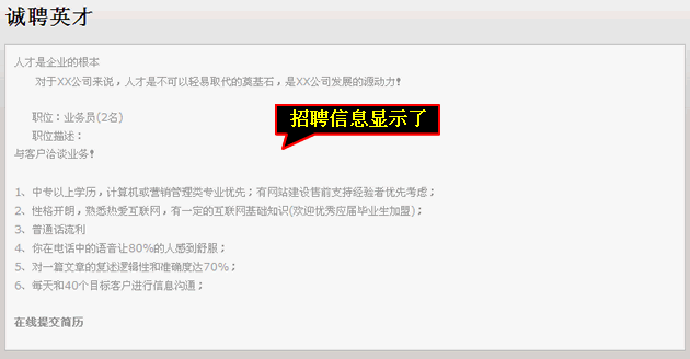 6、添加“招聘信息模块